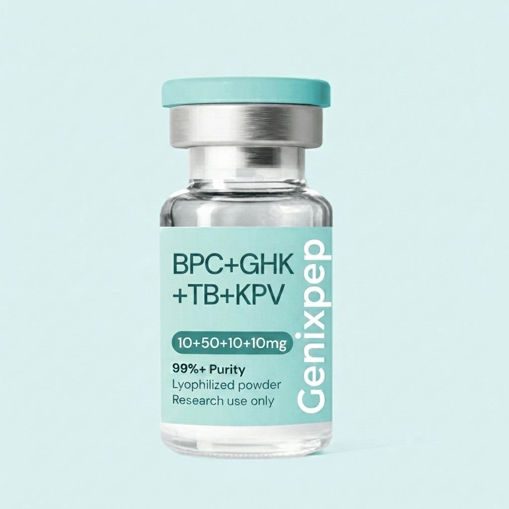 A Quad-Action Advanced Complex consisting of BPC-157, Copper Peptide (GHK-Cu), Thymosin Beta-4 (TB-500), and KPV Peptide.
